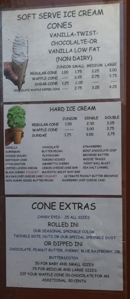 “ Nice people, good ice cream! Very generous servings. I ordered a sm chocolate cone, and it was huge! ”